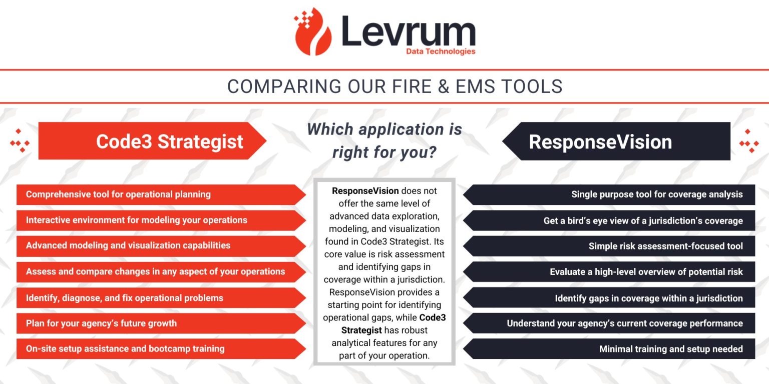 The strategic decisions you and your agency make are complex and highly consequential for your people and the communities you serve. Levrum is your partner in distilling the complexity into simple, validated, auditable criteria for decision-making – and communicating with stakeholders. We’re with you every step of the journey.